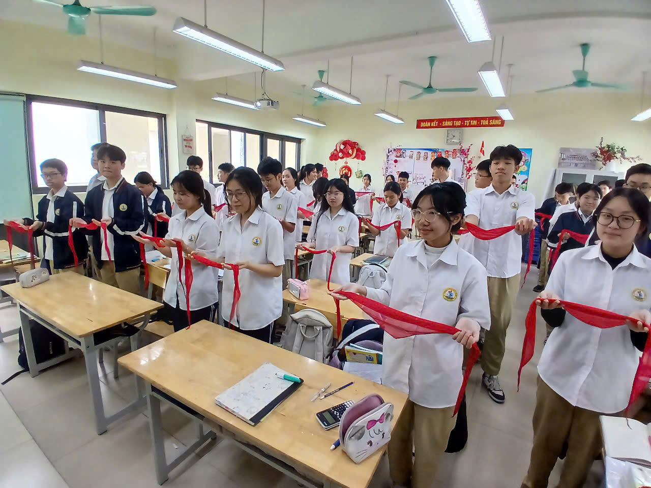 Trong buổi lễ, các em học sinh đã thực hiện nghi thức tháo khăn quàng đỏ, chính thức nói lời chia tay với tổ chức Đội Thiếu niên Tiền phong Hồ Chí Minh – nơi đã gắn bó suốt những năm tháng tuổi thơ. Đây là khoảnh khắc thiêng liêng, ghi dấu sự trưởng thành của mỗi đội viên khi rời mái nhà Đội để chuẩn bị bước sang một chặng đường mới.