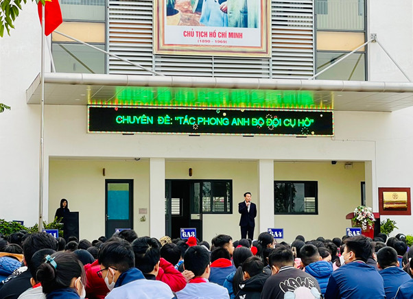 Ngày 5/12/2022 với sự có mặt của thầy giáo Dương Đức Quang - là cựu Quân nhân đã lên chia sẻ với các em học sinh về “Tác phong Anh bộ Đội cụ Hồ”. Thông qua hoạt động, học sinh đã được giáo dục truyền thống, nhân cách sống, góp phần khơi dậy ở các em học sinh niềm tự hào về hình ảnh “anh bộ đội Cụ Hồ”. Đồng thời các em được trau dồi kỹ năng sống, kỹ năng tự phục vụ, kỹ năng giao tiếp, kỹ năng ứng xử, rèn tính kỷ luật, tinh thần đoàn kết, thể hiện lòng biết ơn và sự tri ân của thế hệ trẻ đối với lớp lớp anh hùng chiến sỹ đã hy sinh vì nền hòa bình của dân tộc. Từ đó giúp các em nỗ lực phấn đấu hơn trong học tập, rèn luyện để trở thành con ngoan, trò giỏi, cháu ngoan Bác Hồ, xứng danh là những chủ nhân tương lai của đất nước.