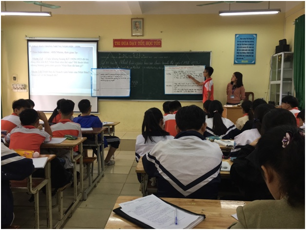 Đây là phương pháp học tập khá quen thuộc đã được các GV của nhóm Sử- Công dân áp dụng trong các tiết học tại trường. Nhằm tăng khả năng tìm tòi, chủ động, tích cực của HS trong việc lĩnh hội kiến thức. Với giờ học tìm hiểu về “” Nhật Bản sau chiến tranh thế giới thứ nhất, Gv đã áp dụng nhiều hình thức khác nhau trong giờ học như tìm hiểu bài ở nhà, làm phiếu học tập, thảo luận cặp đôi, thảo luận nhóm với các phương pháp như nêu vấn đề, thuyết trình, đàm thoại giữa thầy và trò, sử dụng CNTT, phương pháp nhận thức Lịch sử.... Qua bài học, HS đã chủ động lĩnh hội và nắm được các đặc điểm cơ bản của Nhật Bản sau CTTG, nhận thức được quá trình phát xít hóa của Nhật Bản là một trong những nguyên nhân dẫn đến cuộc chiến tranh thế giới thứ hai. Từ đó HS liên hệ được thực tế với BT liên hệ mở rộng: Từ việc giới cầm quyền Nhật Bản chọn giải pháp tiến hành chiến tranh xâm lược để đưa đất nước thoát khỏi khủng hoảng 1929-1933, theo em cần làm gì để không lặp lại việc đó ở các nước hiện nay? Liên hệ với Việt Nam? Khép lại bài học là những bức ảnh mối quan hệ giữa Nhật Bản và Việt Nam trong hiện tại như một bức thông điệp tốt đẹp về chủ trương của Việt nam là giữ mối quan hệ hòa bình, hữu nghị với tất cả các dân tộc khác trên thế giới.