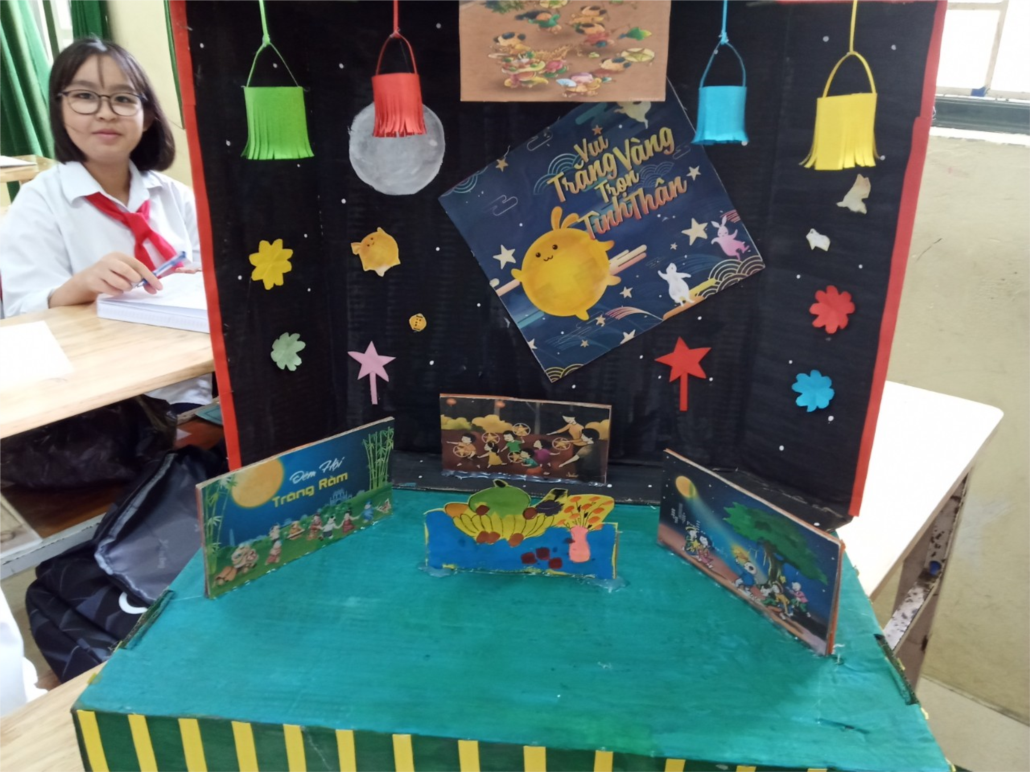hình thức khác nhau: Các tranh vẽ sáng tạo, mô hình trường học hạnh phúc, đêm hội