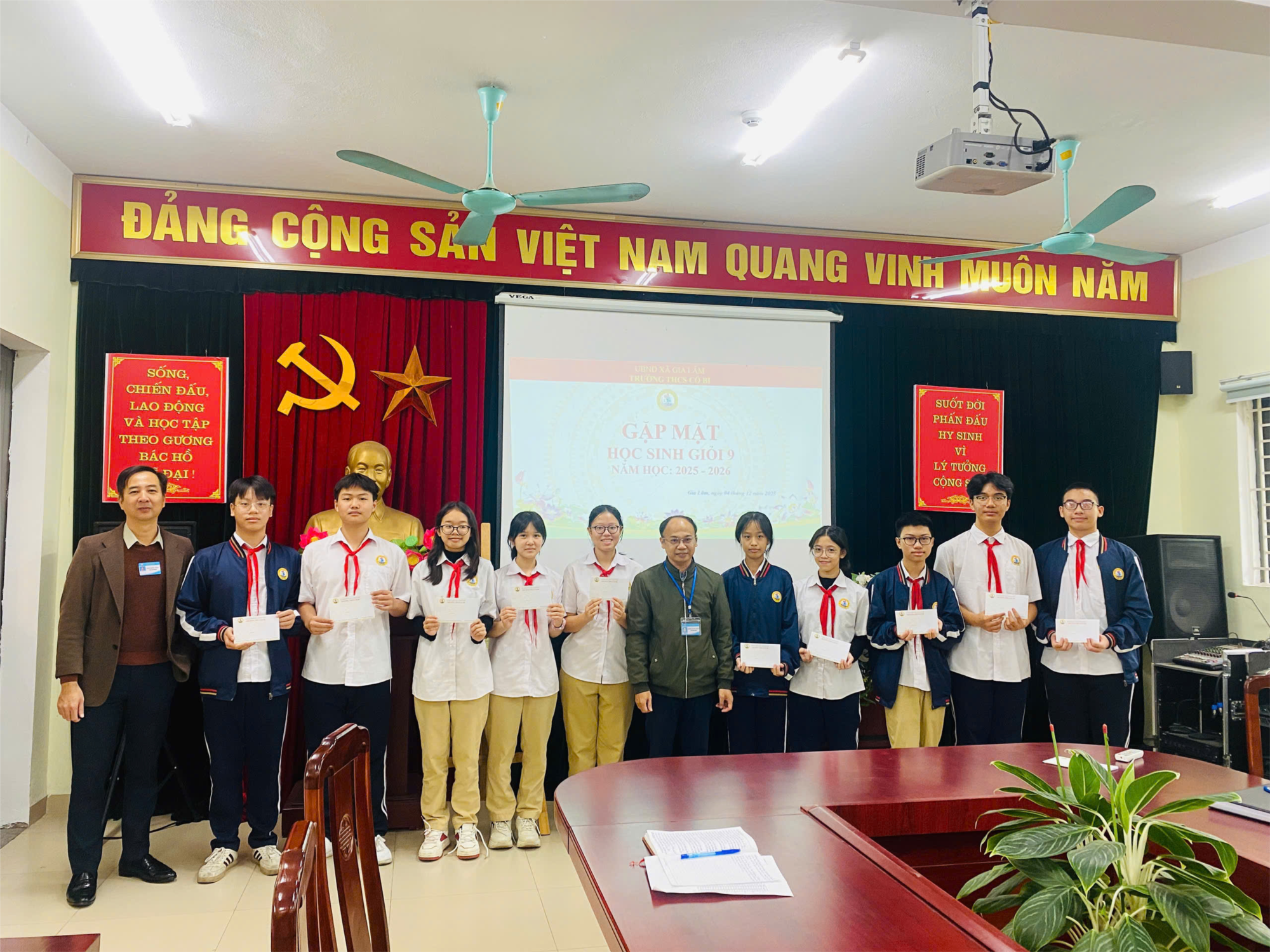 Sáng ngày 4/12, Ban Giám hiệu Trường THCS Cổ Bi đã tổ chức buổi gặp mặt và động viên các em học sinh đội tuyển học sinh giỏi lớp 9 năm học 2025 – 2026.