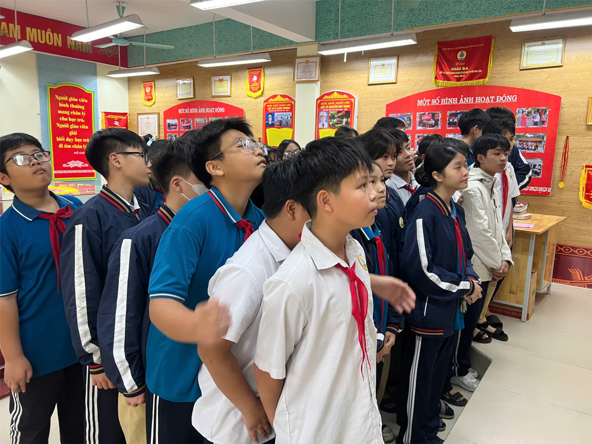 Lớp 8A5 luôn được nhà trường quan tâm giáo dục truyền thống thông qua các hoạt động tại Phòng Truyền thống của trường THCS Cổ Bi. Đây là không gian lưu giữ những hình ảnh, hiện vật quý giá về quá trình xây dựng và phát triển của trường, những thành tích nổi bật của thầy trò qua các thế hệ, cùng các phong trào học tập và rèn luyện.